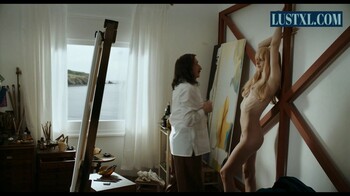 Description: Set in the 1970s, the latter biopic is seen through the eyes of James Linton (Christopher Briney), an Idaho art student who is hired to assist the legendary surrealist. Dalí (Kingsley) and his high-libidoed wife Gala (Barbara Sukowa) split their time between New York City and Spain. That is, when they're not going to wild parties with rock-n-goth singer Alice Cooper (Mark McKenna). Other famous portrayals include musician Jeff Fenholt (Zachary Nachbar-Seckel) and model Donyale Luna (Joella Hinson-King). Speaking of models, we get to lear at Amanda Lear (Andreja Pejić) when she poses in the buff. As Dalí paints her, we can view her full frontal nudity. Needless to say, her pale peaks pique our interest! If that's not sexy enough, Ginesta/Lucy (Suki Waterhouse) uses her naked assets to help a young Dalí (Ezra Miller) create Rorschach-like imprints by plopping her bare bum onto paint and then on the canvas. In other words, thebeautiful muse is literally a masterpiece of ass!