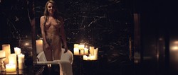 Alicia Vikander standing naked showing the bottom half of her breast and a bit of nipple as well as she runs her hand over her stomach.